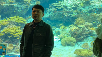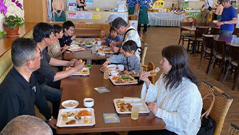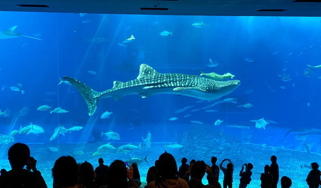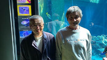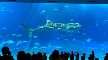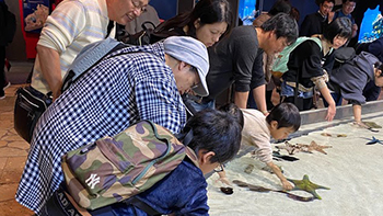 美ら海水族館では子供たちも大はしゃぎ。巨大な水槽や海の生き物を触ったり、社員と家族も皆がいっしょになってたくさんの笑顔が見られました。