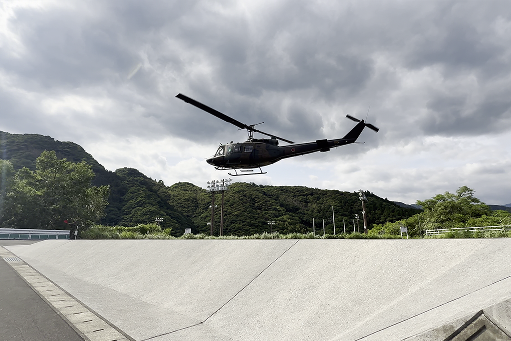 特に注目すべきは、当グループの社屋が南海トラフ地震発生時に避難所の拠点として使用される計画であることです。また、ヘリコプターによる物資輸送の拠点としても想定されているため、今回の視察ではヘリコプターが社屋上空をホバリングして着陸可能性を確認しました。