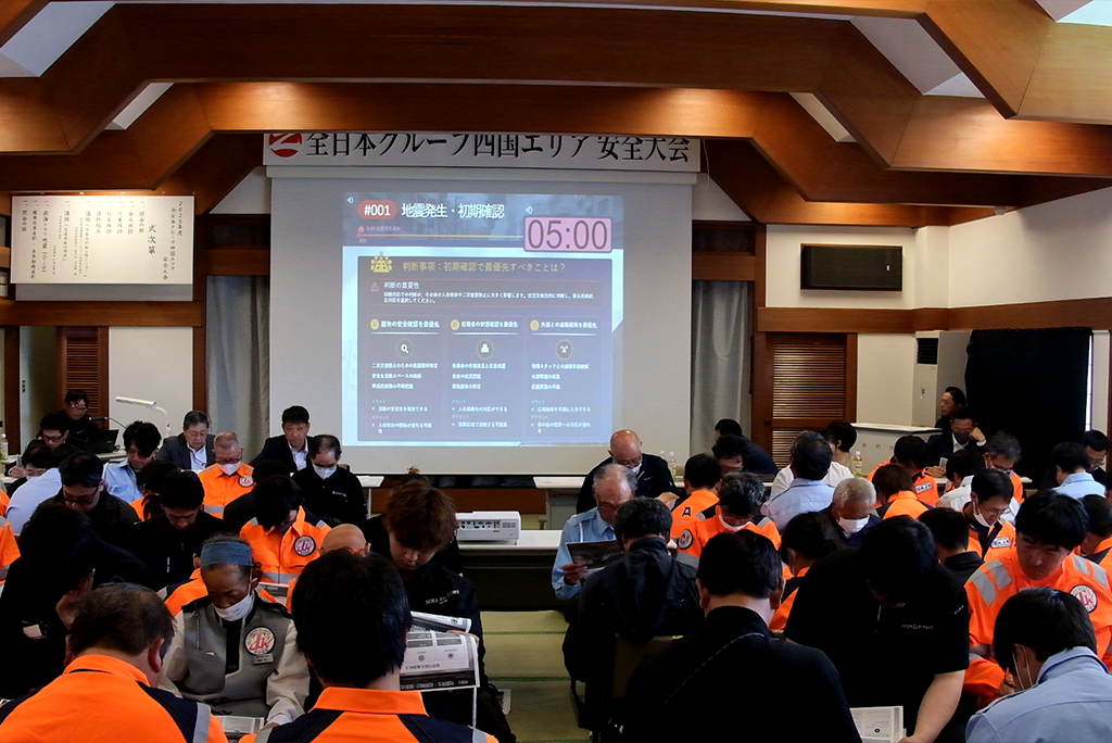 この度、グループとなって初めてとなる「2025年度 全日本グループ四国エリア安全大会」を開催いたしました。本大会は、社員一人ひとりの安全意識を高め、災害や事故に備えることを目的として実施されました。